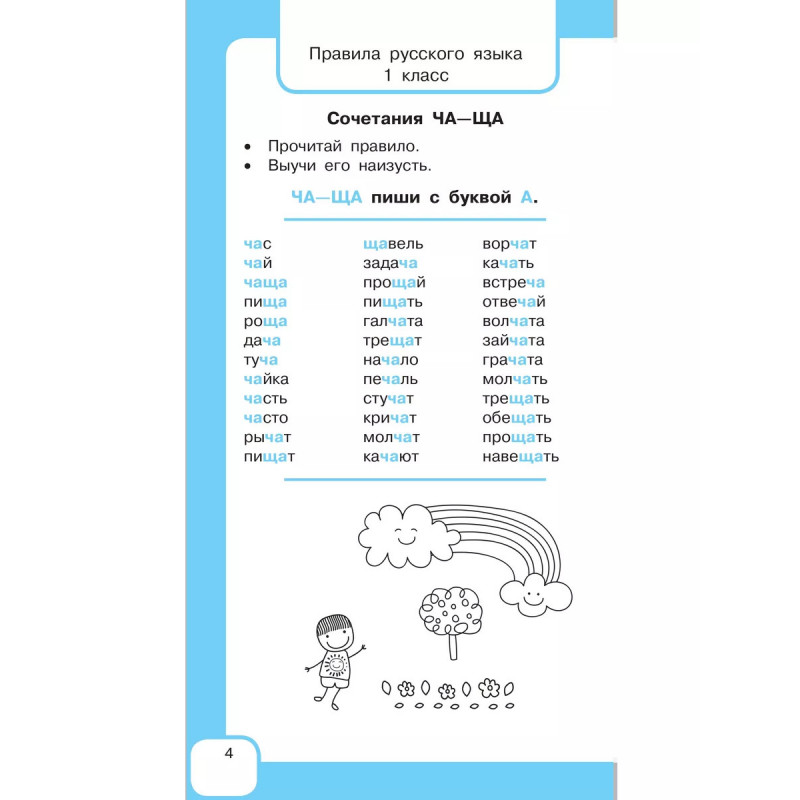 Как быстро выучить с ребёнком все правила русского языка? С помощью эффективной методики известного педагога-практика О.В. Узоровой ребёнок не только легко поймёт и запомнит более 30 основных правил, но и научится их применять. И это ещё не всё! В обучающем пособии Все правила русского языка и словарные слова. Для начальной школы дана система упражнений, позволяющая без труда запомнить словарные слова, часто встречающиеся в диктантах, тестах и контрольных работах. Материал пособия удобно разделён по классам начальной школы. Проверить свои знания ребёнок сможет, написав более 50 словарных диктантов. Благодаря этому пособию к концу четвёртого класса ребёнок будет знать более 300 словарных слов и сможет повысить грамотность письменной и устной речи. Дополнительный бонус практичный формат: пособие удобно брать с собой в дорогу.