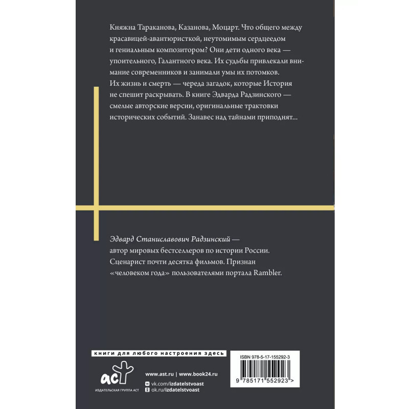 Загадки истории. Княжна Тараканова, Казанова, Моцарт. Что общего между красавицей-авантюристкой, неутомимым сердцеедом и гениальным композитором? Они дети одного века - упоительного, Галантного века. Их судьбы привлекали внимание современников и занимали умы их потомков. Их жизнь и смерть - череда загадок, которые История не спешит раскрывать. В книге Эдварда Радзинского - смелые авторские версии, оригинальные трактовки исторических событий. Занавес над тайнами приподнят...