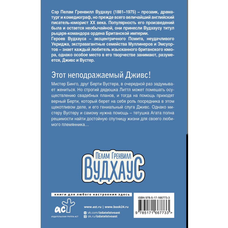 Пелам Гренвил Вудхаус — один из самых популярных английских юмористов XX века, создатель циклов об Укридже и замке Бландинг, но его самые популярные персонажи — добродушный великосветский разгильдяй Берти Вустер и его находчивый слуга Дживс. Книги о Дживсе и Вустере легли в основу популярного комедийного сериала со Стивеном Фраем и Хью Лори в главных ролях. В это издание вошел роман «Этот неподражаемый Дживс», в котором Дживс пытается одновременно выполнить сразу два дела — помочь приятелю Берти жениться и уберечь самого Берти от похода к алтарю.