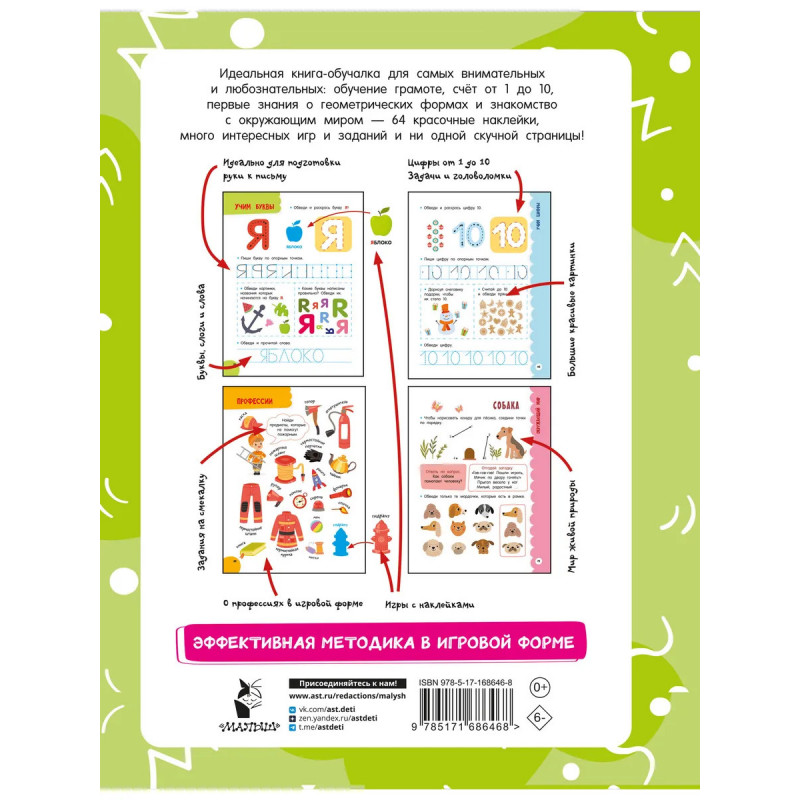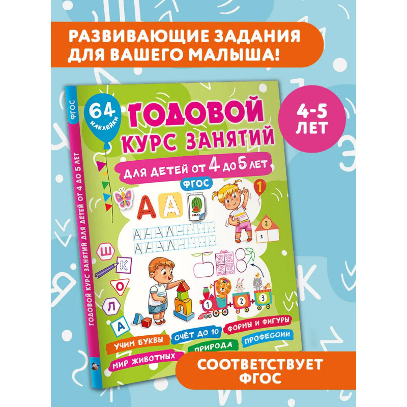 Характеристики Годовой курс занятий для детей от 4 до 5 лет. 64 наклейки.
