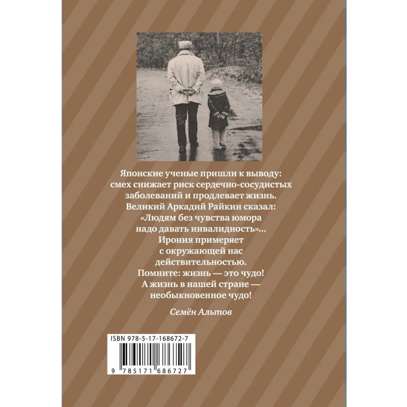 К 80-летию популярнейшего советского и российского сатирика. Лучшие миниатюры. «Мною написано и напечатано за пятьдесят лет достаточно сочинений любого объёма. Всегда считал, что текст должен кончаться там, где кончается мысль. В эту книжку отобрал только короткое. Чтение много времени не займет…» Семён Альтов