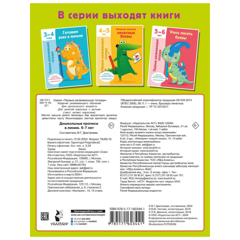 Как научить ребёнка грамотно и красиво писать? Что делать, если малыш постоянно выходит за линейку? На помощь родителям и педагогам придёт универсальная тетрадь «Дошкольные прописи в линию. 6–7 лет». Выполняя задания, ребёнок постепенно научится писать красиво и аккуратно. Юный ученик разовьёт координацию, научится правильно держать ручку, улучшит речь, внимание, память и мышление. Задания построены по принципу от простого к сложному: сначала юный ученик потренируется писать слоги, затем — слова и предложения. Тренажёр подходит как для индивидуальных занятий, так и для групповых. Можно использовать как для проведения уроков в классе, так и для занятий дома.