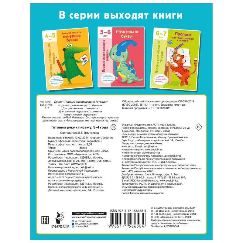 Ребёнок до сих пор плохо держит ручку в руке? Не умеет проводить прямые линии? Вы переживаете, как он научится писать буквы и цифры? Исправить эту ситуацию поможет универсальная тетрадь-тренажёр «Готовим руку к письму. 3–4 года». Будущие первоклассники научатся правильно держать ручку, разовьют мелкую моторику, зрительное восприятие, внимательность, аккуратность. В тренажёре собраны разнообразные задания. Малыш потренируется выводить линии, штриховать рисунки, обводить картинки по точкам, прописывать элементы фигур в строчках и многое другое. Подходит для индивидуальных и групповых занятий. Вперёд — навстречу новым умениям!