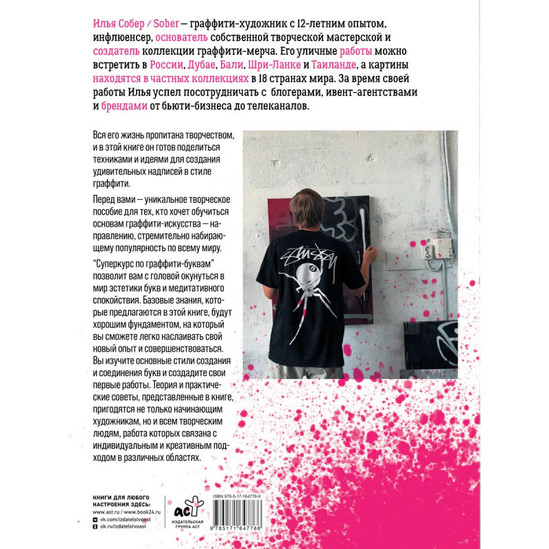 Перед вами — уникальное творческое пособие для тех, кто хочет обучиться основам граффити-искусства — направлению, стремительно набирающему популярность по всему миру. "Суперкурс по граффити-буквам" позволит вам с головой окунуться в мир эстетики букв и медитативного спокойствия. Базовые знания, которые предлагаются в этой книге, будут хорошим фундаментом, на который вы сможете легко наслаивать свой новый опыт и совершенствоваться. Вы изучите основные стили создания и соединения букв и создадите свои первые работы. Теория и практические советы, представленные в книге, пригодятся не только начинающим художникам, но и всем творческим людям, работа которых связана с индивидуальным и креативным подходом в различных областях.