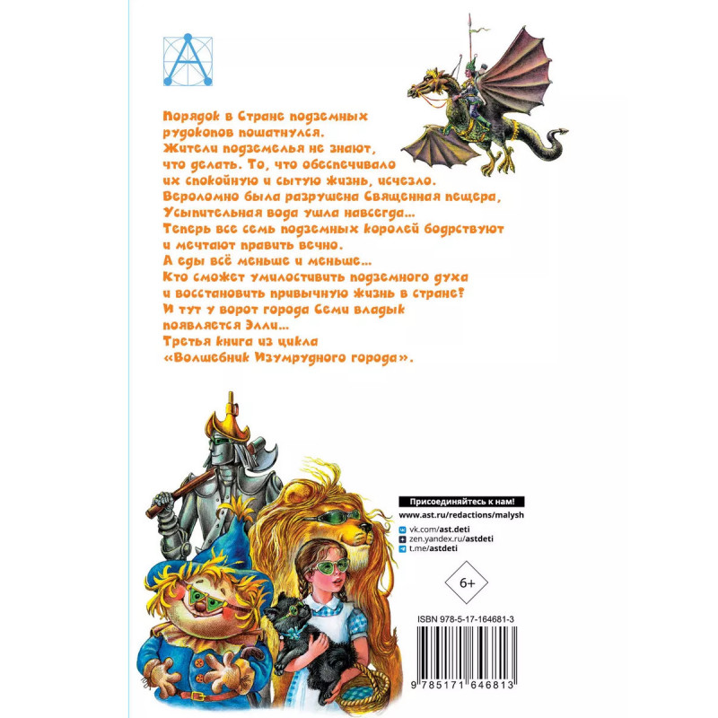 Порядок в Стране подземных рудокопов пошатнулся. Жители подземелья не знают, что делать. То, что обеспечивало их спокойную и сытую жизнь, исчезло. Вероломно была разрушена Священная пещера, Усыпительная вода ушла навсегда Теперь все семь подземных королей бодрствуют и мечтают править вечно. А еды всё меньше и меньше Кто сможет умилостивить подземного духа и восстановить привычную жизнь в стране? И тут у ворот города Семи владык появляется Элли Третья книга из цикла Волшебник Изумрудного города.
