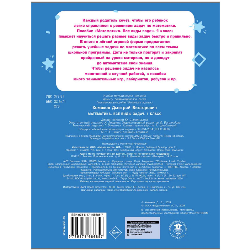 Каждый родитель хочет, чтобы его ребёнок легко справлялся с решением задач по математике. Пособие "Математика. Все виды задач. 1 класс" поможет научиться решать разные виды задач быстро и правильно. В книге в лёгкой игровой форме предлагается решать учебные задачи по математике по всем темам школьной программы. Дети не только повторят и закрепят пройденный на уроке материал, но и доведут до автоматизма свои знания. Чтобы решение задач не казалось монотонной и скучной работой, в пособии много занимательных игр, лабиринтов и ребусов.