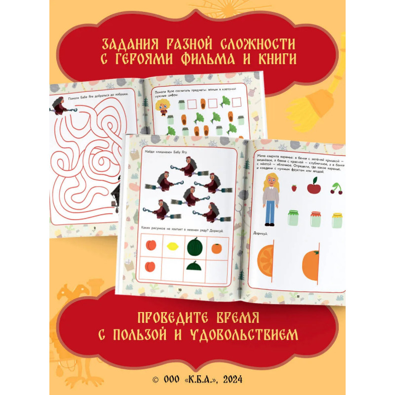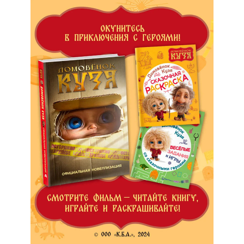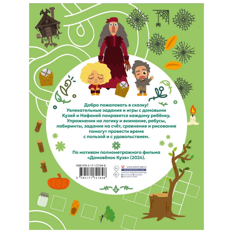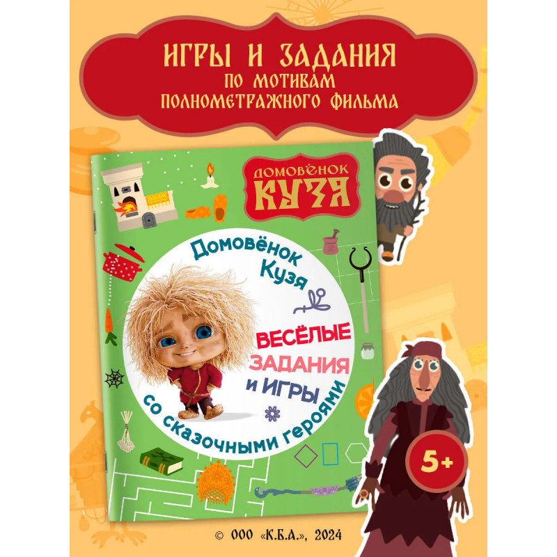 Добро пожаловать в сказку! Увлекательные задания и игры с домовыми Кузей и Нафаней понравятся каждому ребёнку. Упражнения на логику и внимание, ребусы, лабиринты, задания на счёт, сравнение и рисование помогут провести время с пользой и с удовольствием. По мотивам полнометражного фильма "Домовёнок Кузя" (2024).