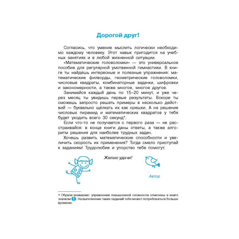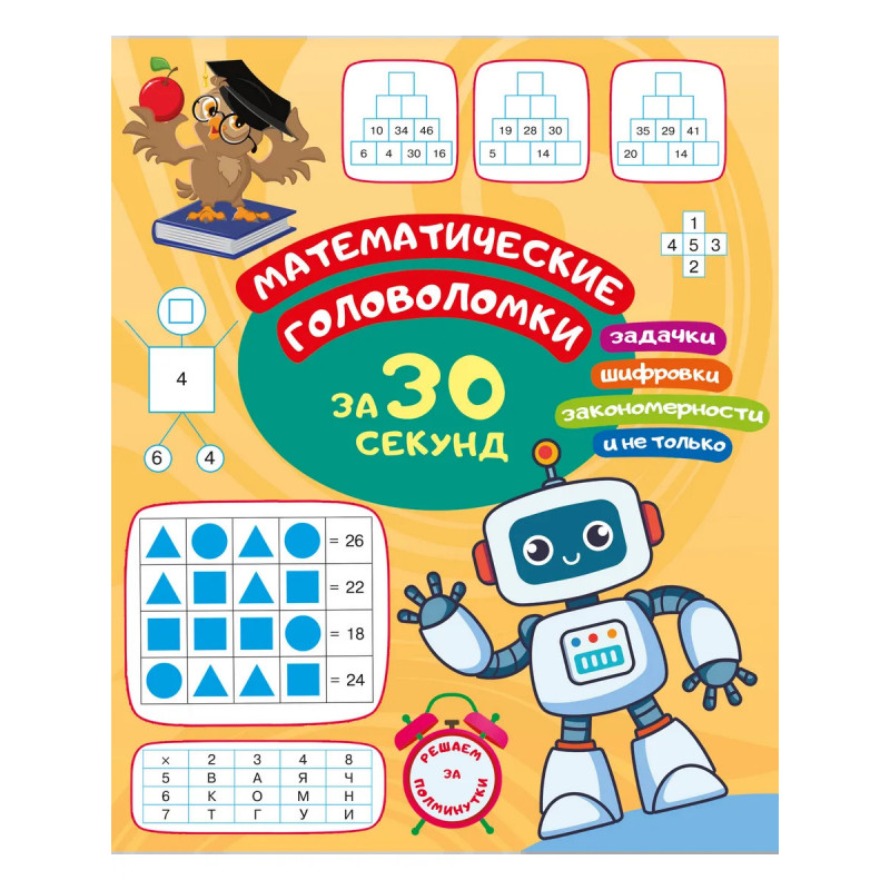 В сборнике «Математические головоломки за 30 секунд» — самые интересные и полезные задания для учеников начальной школы: числовые квадраты, шифровки, закономерности, геометрические задачи, а также многое другое. Занимаясь по книге, ребята разовьют математические способности, подготовятся к контрольным и проверочным работам. Книгу можно использовать для занятий дома и для работы в классе по всем федеральным программам начальной школы.
