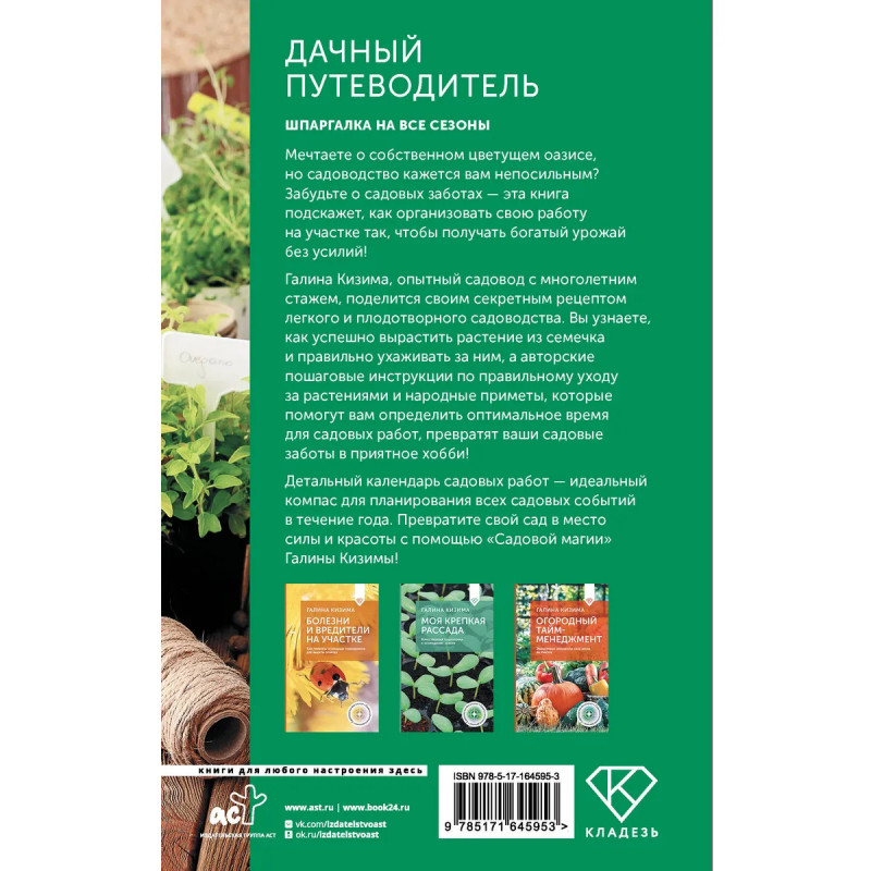 Мечтаете о собственном цветущем оазисе, но садоводство кажется вам непосильным? Забудьте о садовых заботах — эта книга подскажет, как организовать свою работу на участке так, чтобы получать богатый урожай без усилий! Галина Кизима, опытный садовод с многолетним стажем, поделится своим секретным рецептом легкого и плодородного садоводства. Вы узнаете, как успешно вырастить растение из семечка и правильно ухаживать за ним, а авторские пошаговые инструкции и народные приметы помогут вам определить оптимальное время для садовых работ и превратят их в приятное хобби! Детальный календарь садовых работ — идеальный компас для планирования всех садовых событий в течение года. Превратите свой сад в место силы и красоты с помощью "садовой магии" Галины Кизимы!