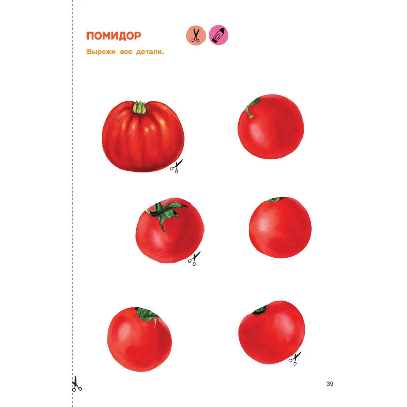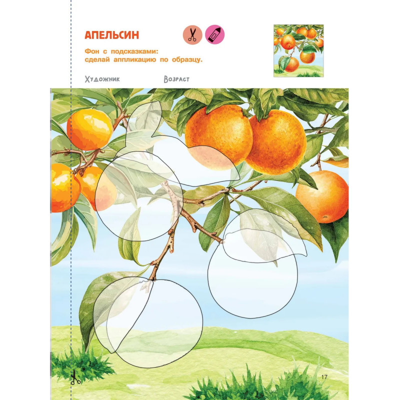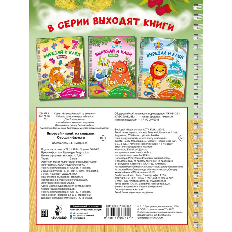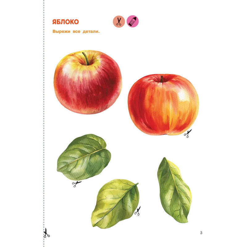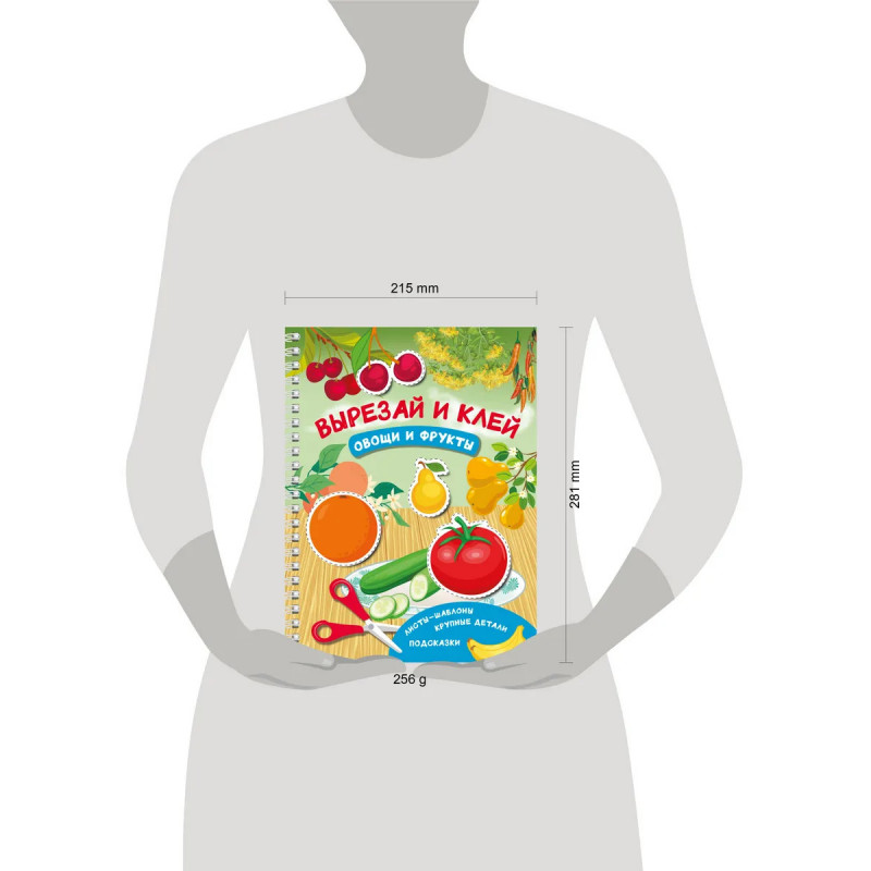 Жужа и Капа рекомендуют! Книга «Вырезай и клей. Овощи и фрукты» — это 32 плотных листа-шаблона на спирали для создания 16 несложных, но прекрасных аппликаций. Чудесные иллюстрации нарисованы профессиональными художниками — все фрукты и овощи выглядят как настоящие. Каждая аппликация состоит из крупных деталей, которые удобно вырезать и клеить как правшам, так и левшам. Ваш малыш может самостоятельно выбрать фон для своего шедевра — с образцами-подсказками или без них. На каждой аппликации есть место для подписи имени и возраста маленького художника — готовые работы малыша можно подарить родным и друзьям, отнести в детский сад на конкурс или повесить в рамке на стену. Все аппликации ребёнок может сделать как вместе с мамой (удовольствие от совместного творчества бесценно), так и самостоятельно. Удобно маме, полезно и доступно ребёнку — то, что надо!
