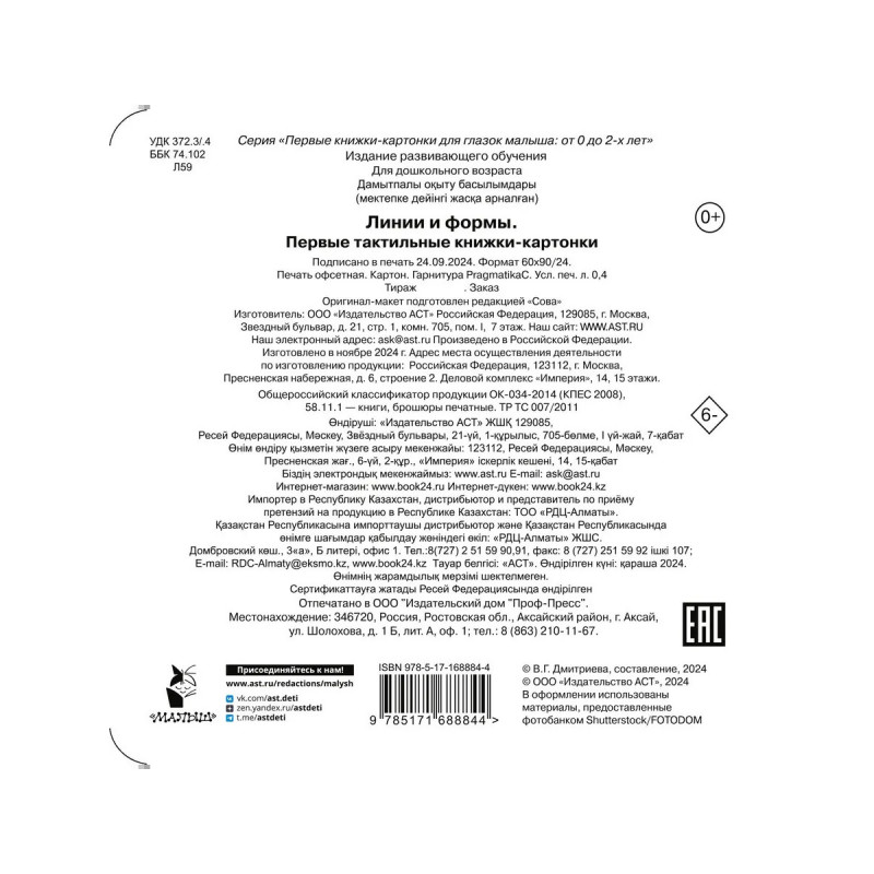 Знаете ли вы, как видит мир ваш новорождённый ребёнок? В поле его зрения — лишь серые размытые изображения и неясные силуэты. Малышу предстоит пройти долгий путь, прежде чем он научится фокусировать взгляд, воспринимать предметы объёмно, подмечать детали, концентрировать внимание. Давайте поможем ему! Занятия по книге «Линии и формы. Первые тактильные книжки-картонки» не только развивают остроту зрения младенца, но и стимулируют раннее развитие. Все картинки — рельефные, поэтому каждую страницу книги можно и рассматривать, и исследовать на ощупь пальчиками или ладошками. С помощью нашей книги малыш получит свои первые знания о геометрических формах, потренирует зрительно-моторную координацию, начнёт лучше ориентироваться в микропространстве. Книга активизирует познавательные и творческие способности ребёнка. Она небольшого размера (идеально для младенца!), безопасна (имеет закруглённые края страниц) и долговечна (выполнена из плотного картона). Лучший подарок новорождённому!