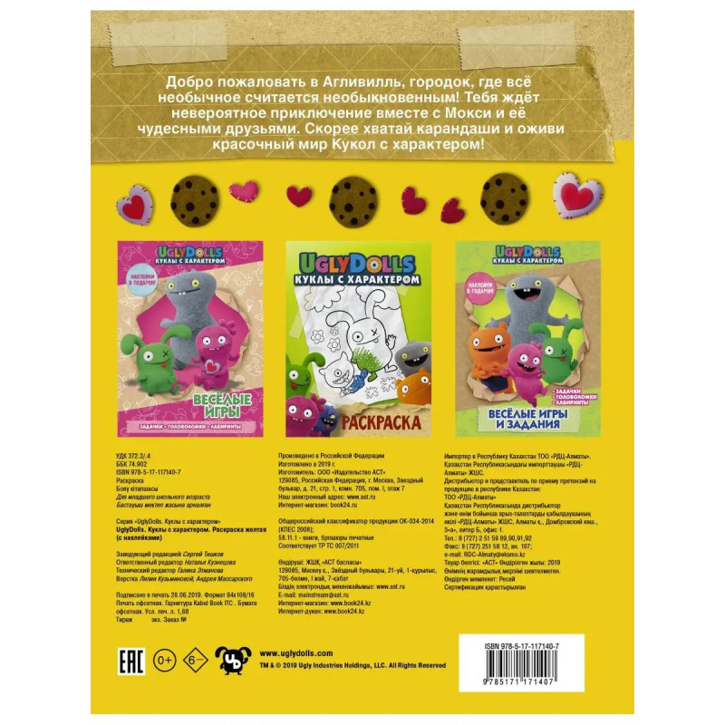 UglyDolls. Куклы с характером. Раскраска (желтая) (с наклейк
