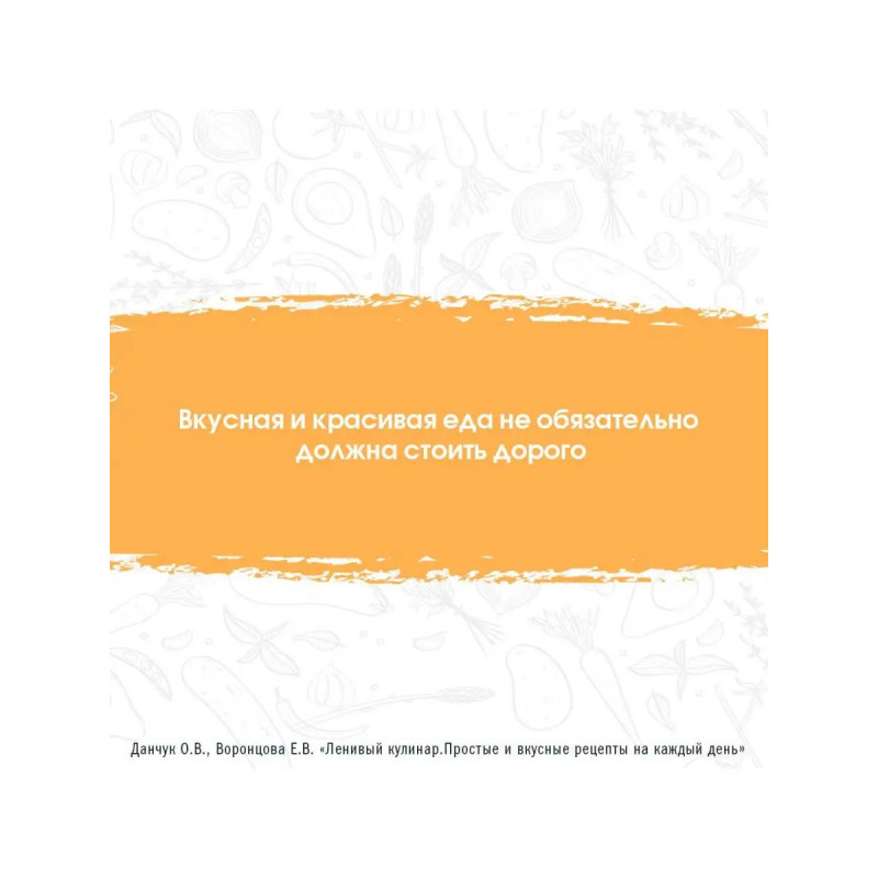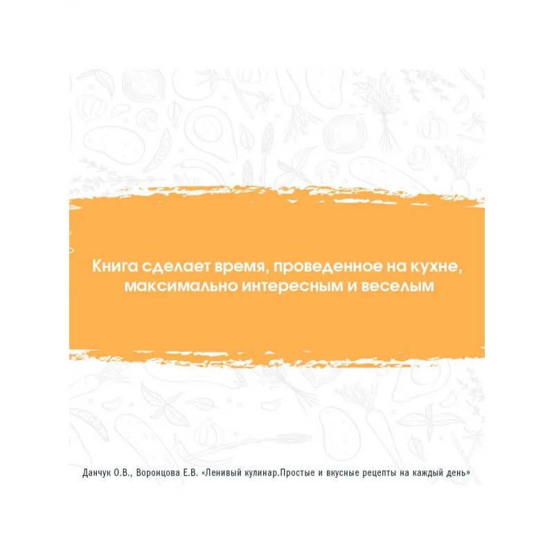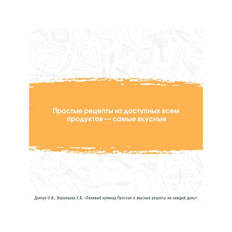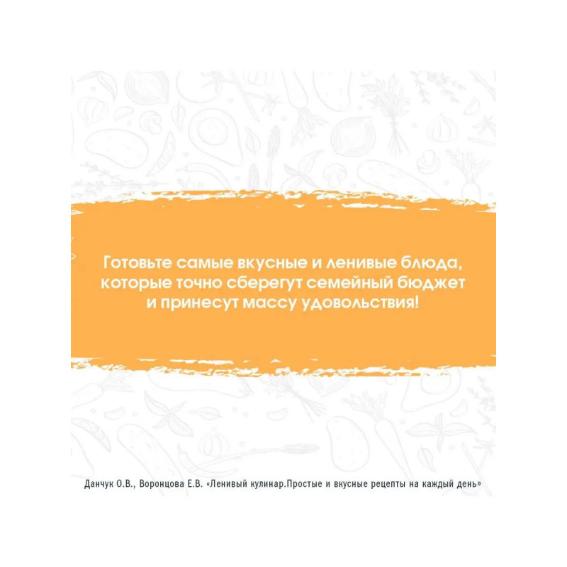 Новая книга рецептов от сестер Ольги Данчук и Елены Воронцовой создателей популярного кулинарного блога и авторов серии книг Ленивый кулинар. В эту книгу вошло более 8-и новых блюд, которые не ударят по семейному бюджету. Ленивые рецепты сделают время, проведенное на кухне, максимально увлекательным. Внутри вы найдете пошаговые инструкции, дополненные красочными иллюстрациями.