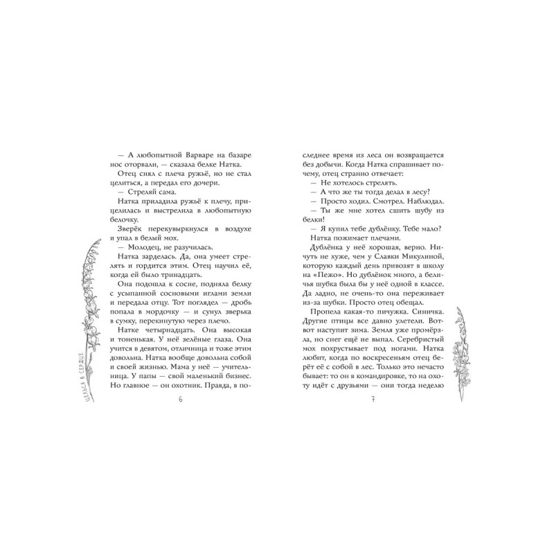 Первая любовь – сложное чувство. Ты её ждёшь, мечтаешь, чтобы она поскорее пришла, а когда любовь приходит – не знаешь, что делать с нахлынувшими чувствами. Натке нравится одноклассник Юра. Он умный, рассудительный, красивый, не такой, как все остальные мальчишки! А ещё – о радость! – Юра проявляет интерес к Наташе. В голове у девочки сплошные вопросы. Как общаться с парнем? Чем его впечатлить, чтобы он сильнее в неё влюбился? Натка решается на неожиданный поступок, не зря она дочь охотника… Оценит ли это её избранник?