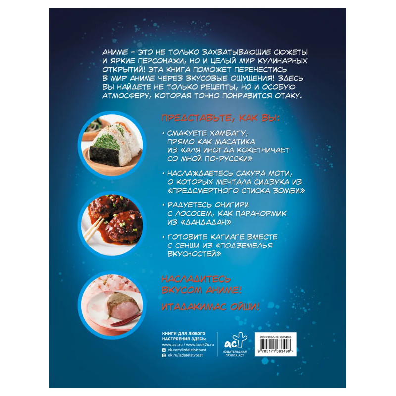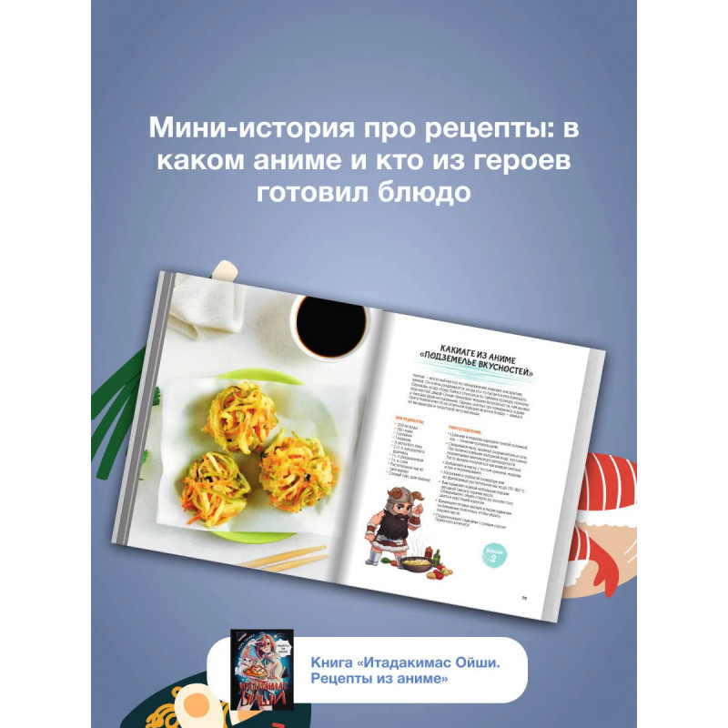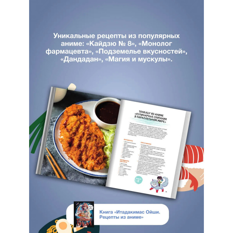 Обожаете аниме? Но умеете ли вы готовить аппетитные блюда, которые видите на экране? Попробуйте себя в роли аниме-повара с новой кулинарной книгой Иори Танака «Итадакимас Ойши. Рецепты из аниме», и приготовьте блюда из популярных аниме таких, как «Дандадан», «Аля иногда кокетничает со мной по-русски», «Кайдзю No 8», «Монолог фармацевта», «Подземелье вкусностей», «Магия и мускулы» и других. Вас ждут простые рецепты приготовления закусок, супов, салатов, горячего, десертов, выпечки и напитков, с которыми справится даже новичок. Не нужно искать тематический ресторан –– устройте аниме-фуршет у себя дома! В книге вы найдете не только рецепты, но и небольшие увлекательные истории о том, в каком аниме и при каких обстоятельствах появилось блюдо, и кто из героев его готовил или ел. А фотографии аппетитных блюд и аниме-иллюстрации в чиби-рисовке, вызывают вдохновение и аппетит. «Итадакимас Ойши» — кулинарная книга для настоящих отаку!