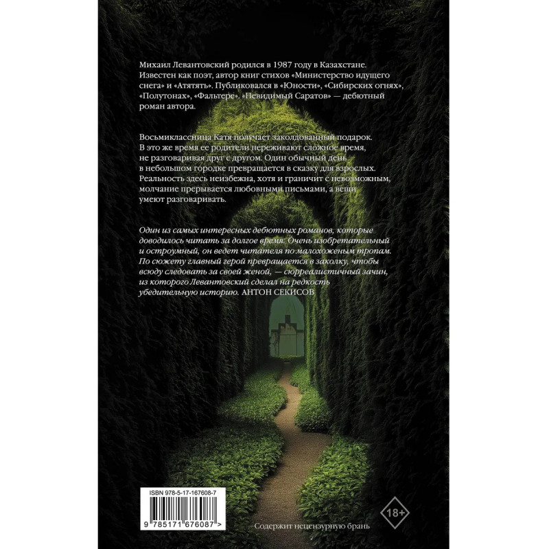 - Новинка РЕШ. - Яркий дебют поэта в прозе. - Классическое толстовское «Все счастливые семьи похожи друг на друга, каждая несчастливая семья несчастлива по‑своему» на современный лад. - Сюрреалистичное путешествие в провинциальный город, где магия переплетается с реальностью. История любовных метаний, родительских переживаний и неожиданных поворотов судьбы, написанная поэтически и с ноткой симпатичного кэрролловского безумия. - Великолепный язык и виртуозная игра смыслов и эмоций с ноткой уместного безумия.