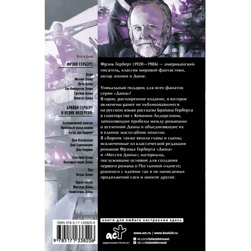 Уникальный подарок для всех фанатов серии "Дюна"! Второе, расширенное издание, в которое включены ранее не публиковавшиеся на русском языке рассказы Брайана Герберта в соавторстве с Кевином Андерсоном, заполняющие пробелы между романами о вселенной Дюны и объединяющие их в единое масштабное полотно. В сборник также вошли главы и сцены, исключенные из классической редакции романов Фрэнка Герберта "Дюна" и "Мессия Дюны"; материалы, послужившие основой для создания первого романа о Пустынной планете; рукописи с идеями так и не написанных продолжений саги и многое другое.