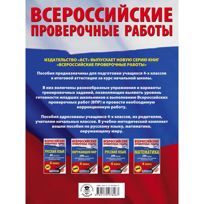 Сборник заданий и упражнений для подготовки к итоговым работам по всем разделам курса математики начальной школы. Пособие построено на основе дифференциации учебного материала и учете уровня математической подготовки ученика. Все задания (базового и повышенного уровня сложности) объединены в Математические разминки (на 5-10 мин), Тематические самостоятельные работы (на 5-15 мин), Тренировочные проверочные работы по каждому разделу курса (на 20-25 мин). Пособие содержит образцы выполнения типовых заданий по разным разделам курса "Числа и величины", "Арифметические действия", "Работа с текстовыми задачами", "Пространственные отношения. Геометрические фигуры", "Геометрические величины", "Работа с информацией", а также ответы и комментарии к решениям. Ученик может выполнять задания на уроке и дома.