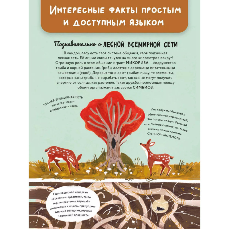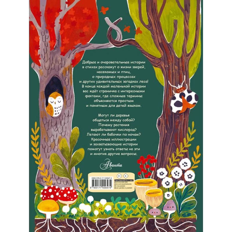 Эта книга покажет ребёнку взаимосвязь всех природных процессов и явлений. Добрые и очаровательные истории о животных и растениях в стихах расскажут об удивительных загадках леса, связывая их между собой! В конце каждой маленькой истории читателя ждёт страничка с интересными фактами, где сложные термины и процессы объясняются простым и понятным для детей языком. Достоверные иллюстрации помогут наглядно объяснить ребёнку, как растут лягушки, почему дрозды собираются в стаю и многое другое. Для младшего школьного возраста.