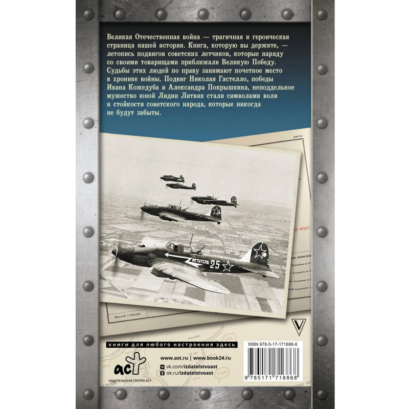Великая Отечественная война – трагичная и героическая страница нашей истории. Книга, которую вы держите, - летопись подвигов советских летчиков, которые наряду со своими товарищами приближали Великую Победу. Судьбы этих людей по праву занимают почетное место в хронике войны. Подвиг Николая Гастелло, победы Ивана Кожедуба и Александра Покрышкина, неподдельное мужество юной Лидии Литвяк стали символами воли и стойкости советского народа, которые никогда не будут забыты.
