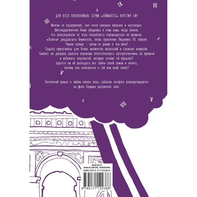 Многие не подозревают, как тесно связаны прошлое и настоящее. Шестнадцатилетняя Анаис убедилась в этом сама, когда узнала, что унаследовала от отца способность перемещаться во времени. "Золотые двадцатые" Хемингуэя, эпоха правления Людовика XV, короля Черное солнце, зачем ее уносит в эти века? Судьба приготовила для Анаис множество испытаний и сложных вопросов. Сможет ли девушка вынести огромную ответственность путешественника во времени и избежать опасностей, которые готовит ей прошлое? Удастся ли ей разгадать все тайны своей семьи и понять, почему она появляется в той или иной эпохе?