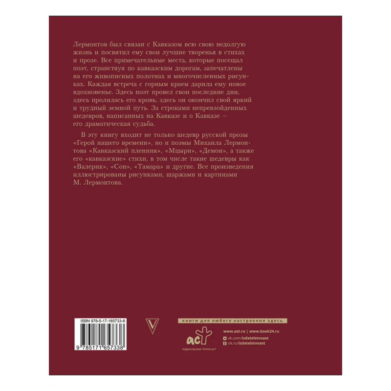 Лермонтов был связан с Кавказом всю свою недолгую жизнь и посвятил ему свои лучшие творенья в стихах и прозе. Все примечательные места, которые посещал поэт, странствуя по кавказским дорогам, запечатлены на его живописных полотнах и многочисленных рисунках. Каждая встреча с горным краем дарила ему новое вдохновенье. Здесь поэт провел свои последние дни, здесь пролилась его кровь, здесь он окончил свой яркий и трудный земной путь. За строками непревзойденных шедевров, написанных на Кавказе и о Кавказе - его драматическая судьба. В эту книгу входит не только шедевр русской прозы "Герой нашего времени", но и поэмы Михаила Лермонтова "Кавказский пленник", "Мцыри", "Демон", а также его "кавказские" стихи, в том числе такие шедевры как "Валерик", "Сон", "Тамара" и другие. Все произведения иллюстрированы рисунками, шаржами и картинами М. Лермонтова