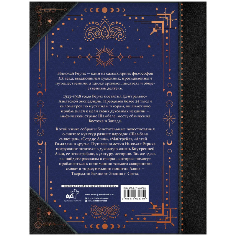Николай Рерих один из самых ярких философов XX века, выдающийся художник, прославленный путешественник, а также археолог, писатель и общественный деятель. 19231928 годы Рерих посвятил Центрально-Азиатской экспедиции. Преодолев более 25 тысяч километров по пустыням и горам, он вплотную приблизился к цели своих духовных исканий мифической стране Шамбале, месту сближения Востока и Запада. В этой книге собраны блистательные повествования о синтезе культур разных народов: "Шамбала сияющая", "Сердце Азии", "Майтрейя", "Алтай Гималаи" и другие. Путевые заметки Николая Рериха погружают читателя в духовную жизнь Внутренней Азии, ее этнографию, культуру, историю. Также здесь вы найдете рассказы и очерки, которые помогут приблизиться к пониманию "самого священного слова" и "краеугольного понятия Азии" Твердыни Великого Знания и Света.
