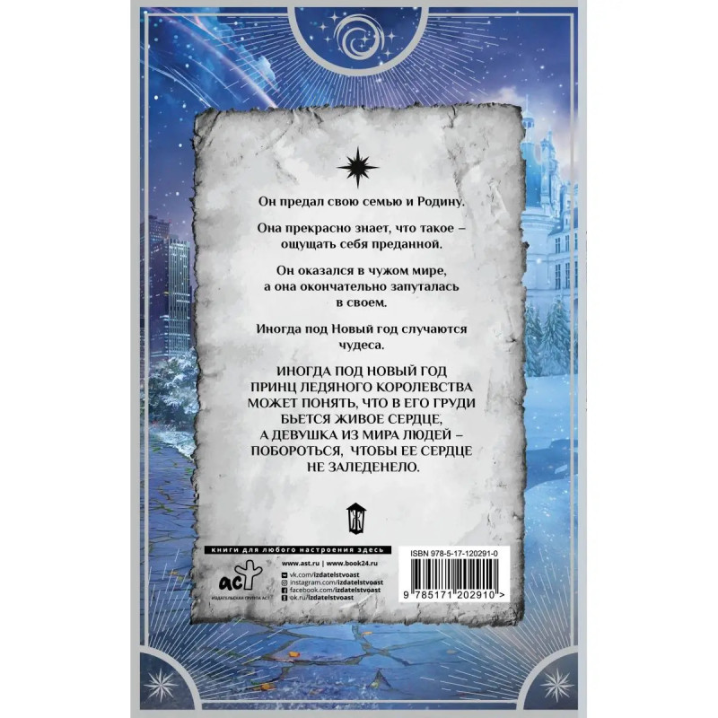 Он предал свою семью и Родину. Она прекрасно знает, что такое ощущать себя преданной. Он оказался в чужом мире, а она окончательно запуталась в своем. Иногда под Новый год случаются чудеса. Иногда под Новый год принц ледяного королевства может понять, что в его груди бьется живое сердце, а девушка из мира людей побороться, чтобы её сердце не заледенело.