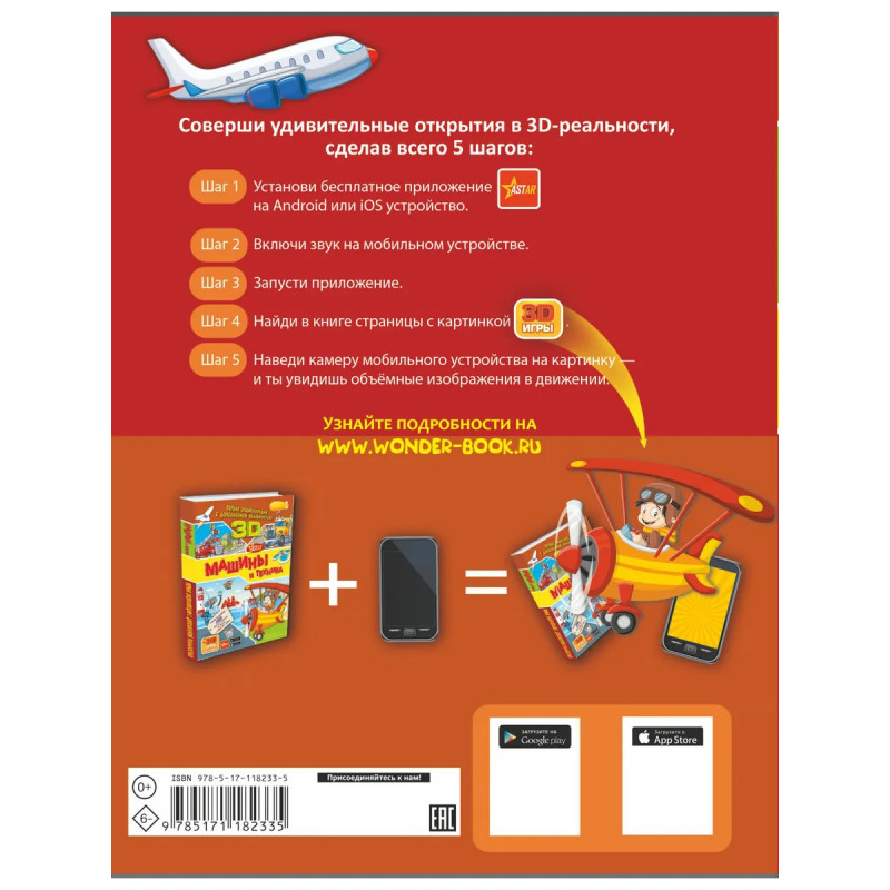 Это не просто книга о технике -- перед вами настоящая интерактивная энциклопедия! На ее страницах содержится множество полезных сведений о технических достижениях человечества: бытовых приборах, средствах связи, различных видах наземного, водного, воздушного и даже космического транспорта. А используя смартфон или планшет как своеобразный пульт управления, с этих страниц можно самому запускать ракеты, управлять вертолетом, наблюдать за плаванием субмарины и даже вызывать волны в море, чтобы посмотреть, как плавает корабль! И еще множество открытий, приключений и настоящих сюрпризов ожидает читателя этого познавательного 3D-издания. Для дошкольного возраста.