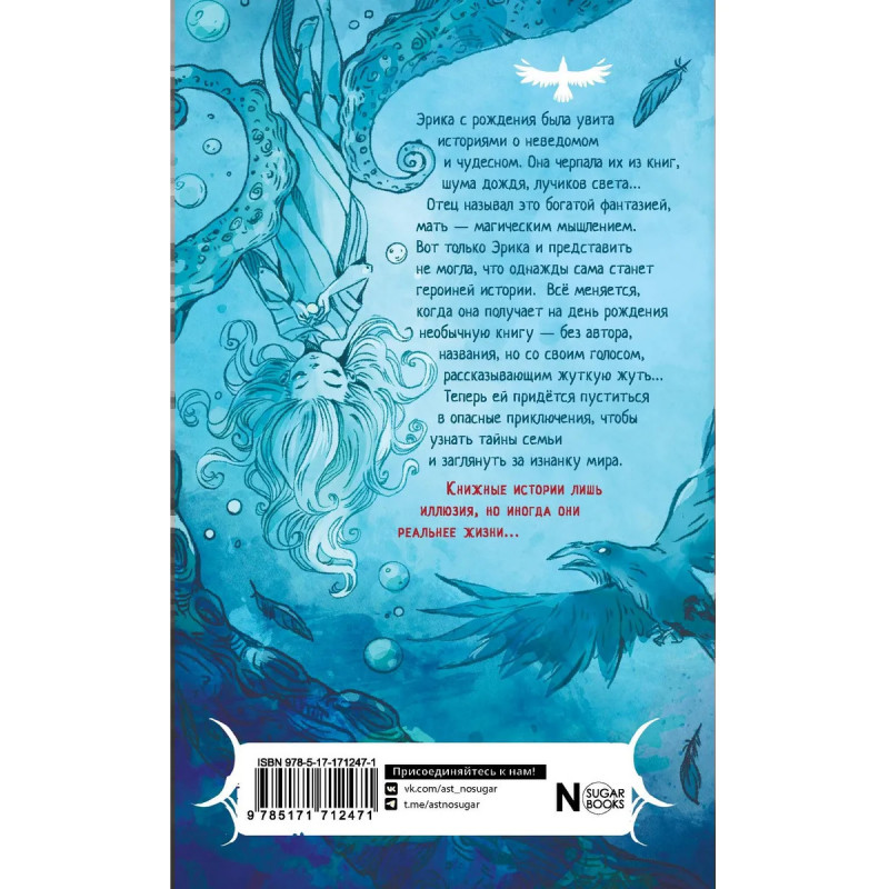 Эрика с рождения была увита историями о неведомом и чудесном. Она черпала их из книг, шума дождя, лучиков света... Отец называл это богатой фантазией, мать — магическим мышлением. Вот только Эрика и представить не могла, что однажды сама станет героиней истории. Всё меняется, когда она получает на день рождения необычную книгу - без автора, названия, но со своим голосом, рассказывающем жуткую жуть... Теперь ей придётся пуститься в опасные приключения, чтобы узнать тайны семьи и заглянуть за изнанку мира.