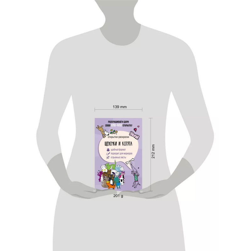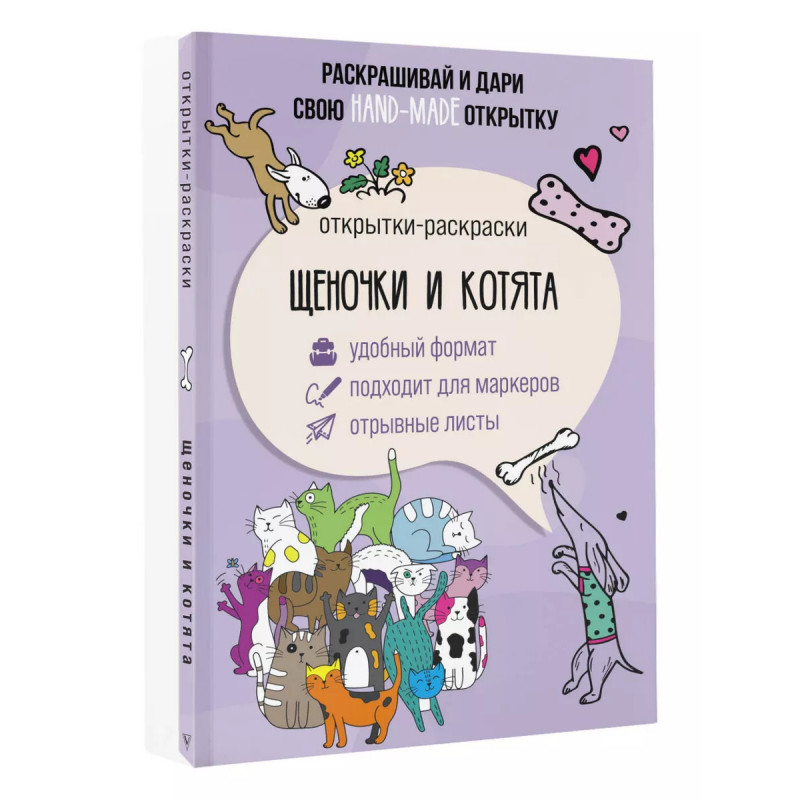 Щеночки и котята. Открытка-раскраска. Что делать, если ты обожаешь животных? Конечно, брать в руки раскраску "Щеночки и котята". Отрывные листы и твердая подложка для рисования помогут комфортно и в любом месте создать hand-made открытку и сразу ее вручить. Творите по пути на работу или учебу, ведь с нашей раскраской это так удобно. Просто раскрась милого зверька и подари другу!