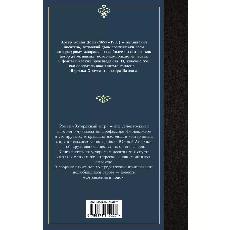 Затерянный мир. Роман "Затерянный мир" - это увлекательная история о чудаковатом профессоре Челленджере и его друзьях, открывших настоящий "затерянный мир" в неисследованном районе Южной Америки и обнаруживших в нем живых динозавров. Книга ничуть не устарела и десятилетия спустя читается с таким же интересом, с каким читалась и прежде. В сборник также вошло продолжение приключений полюбившихся героев - повесть "Отравленный пояс".