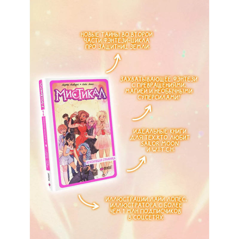 Мистикал. Том 2: Исчезнувшая стражница. Раз в 200 лет открываются волшебные Врата, которые соединяют наш мир с миром хаоса и темных сил. Пять обычных девочек получают суперспособности Ордена Мистикал и встают на защиту человечества от монстров, которые приходят с другой стороны Врат. Враги становятся опаснее, а силы девочек хоть и растут, но также и таят в себе риски. Смогут ли Эрин, Нора, Ирис, Хана и Луна преодолеть растущее недоверие друг к другу и справиться со злом? А ведь это непростая миссия становится еще сложнее, когда на носу экзамены и школьный выпускной. Окунитесь в волшебные приключения с невероятными иллюстрациями популярной испанской художницы Лайи Лопес. Для среднего школьного возраста.