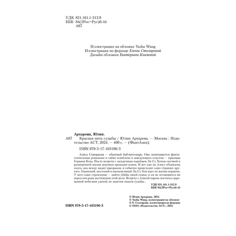 Алиса Скворцова обычный библиотекарь. Она зачитывается фантастическими романами и тайно влюблена в заведующего отделом красавца Германа Коха. После встречи с загадочным корейцем Ли Су Хеном скучной и размеренной жизни девушки приходит конец. И вот уже на Алису объявлена охота, она всюду видит призраков, и события происходят одно страннее другого.Одинокий, жестокий и насмешливый Ли Су Хен идет по жизни играючи. У него одно стремление найти убийц своей семьи, и он не остановится ни перед чем ради достижения этой цели. Встречу с Алисой парень посчитал дарованной небесами удачей, не заметив знаков судьбы