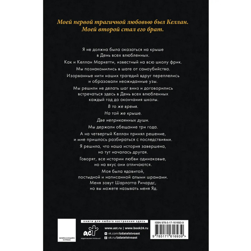 – От автора бестселлера «Мой темный Ромео»! – Глубокая мрачная драма о семейных секретах, психологических травмах и сложных отношениях родственных душ. – Напряженная и горячая романтическая история с горьким послевкусием. – Для ценителей жанра Dark Romance и романов Рины Кейт, Сьерры Симоне, Пенелопы Дуглас, Эль Кеннеди, Эммы Скотт и Коры Рейли.