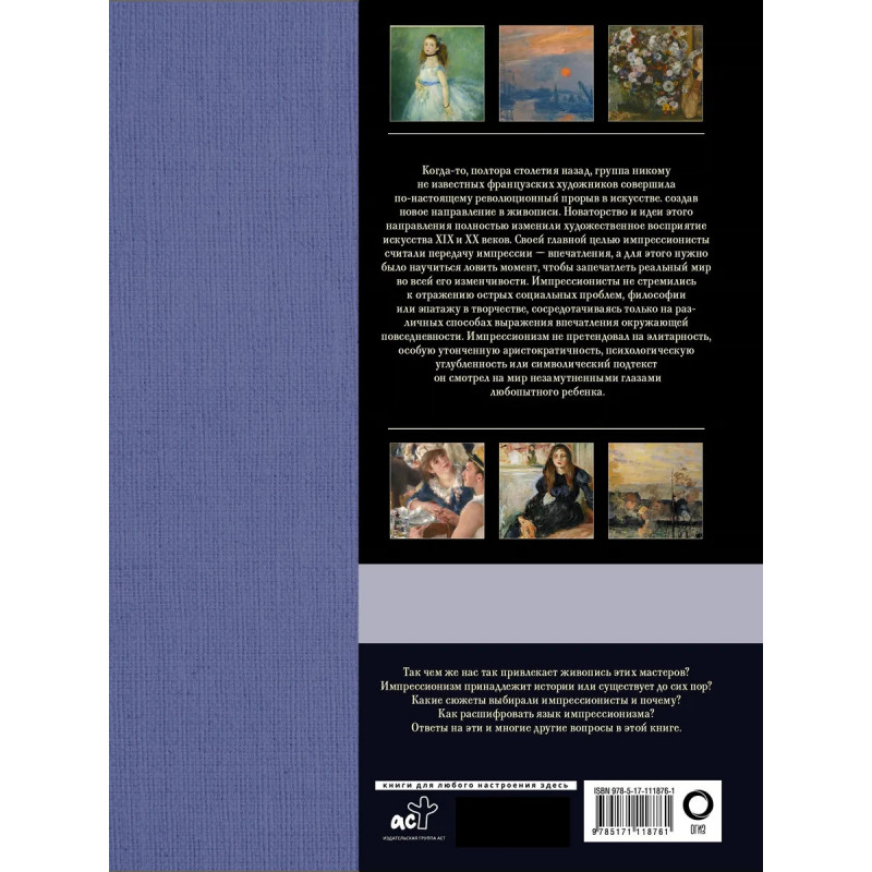 Импрессионизм… Это слово знакомо почти всем, даже далеким от искусства людям. Но не всегда мы можем разобраться в тонкостях этой удивительной живописи. В данной книге, снабженной множеством красочных иллюстраций, вы найдете ответы на многие вопросы, касающиеся импрессионизма: где и когда он зародился, благодаря кому и чему он появился; чем отличается импрессионизм от других направлений в живописи и кого из мастеров можно считать импрессионистом и почему.