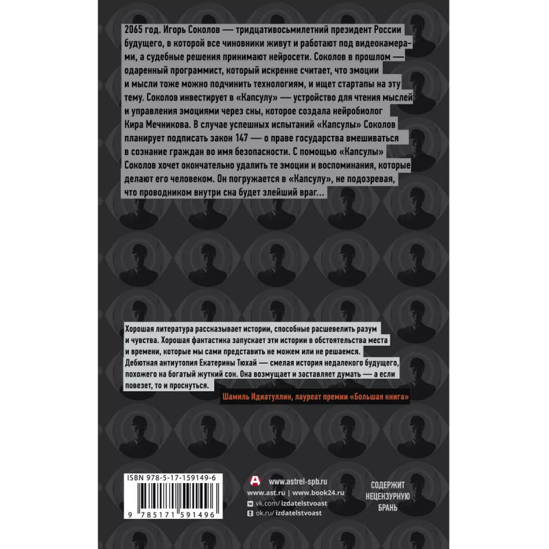 Девочка со спичками. 2065 год. Игорь Соколов - тридцативосьмилетний президент России будущего, в которой все чиновники живут и работают под видеокамерами, а судебные решения принимают нейросети. Соколов в прошлом - одаренный программист, который искренне считает, что эмоции и мысли тоже можно подчинить технологиям, и ищет стартапы на эту тему. Соколов инвестирует в "Капсулу" - устройство для чтения мыслей и управления эмоциями через сны, которую создала нейробиолог Кира Мечникова. В случае успешных испытаний "Капсулы" Соколов планирует подписать закон 147 - о праве государства вмешиваться в сознание граждан во имя безопасности. С помощью "Капсулы" Соколов хочет окончательно удалить те эмоции и воспоминания, которые делают его человеком. Он погружается в "Капсулу", не подозревая, что проводником внутри сна будет злейший враг