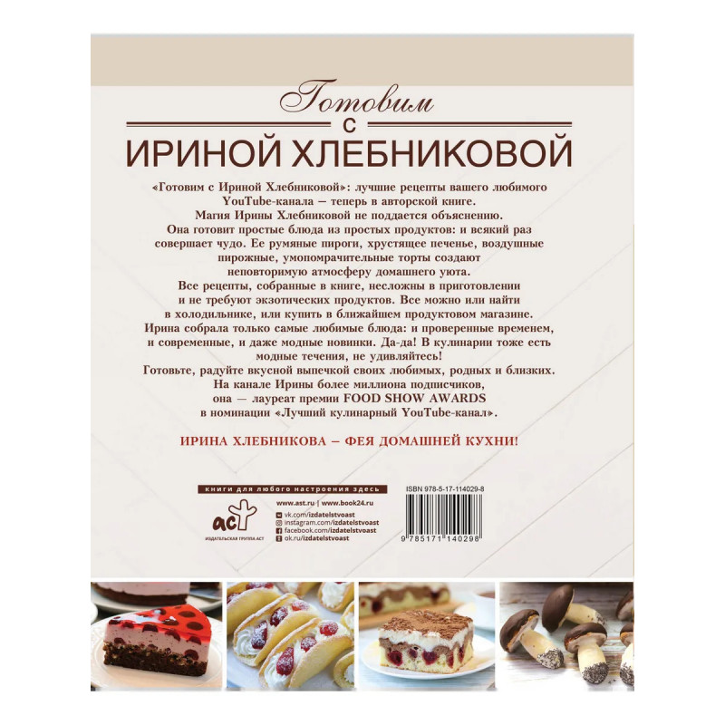 Лучшие рецепты любимого YouTube-канала – теперь в авторской книге! Все рецепты, собранные в книге, несложны в приготовлении и не требуют экзотических продуктов. Магия Ирины Хлебниковой не поддается объяснению. Она готовит простые блюда из простых продуктов: и всякий раз совершает чудо. Ее румяные пироги, хрустящее печенье, воздушные пирожные, умопомрачительные торты создают неповторимую атмосферу домашнего уюта.