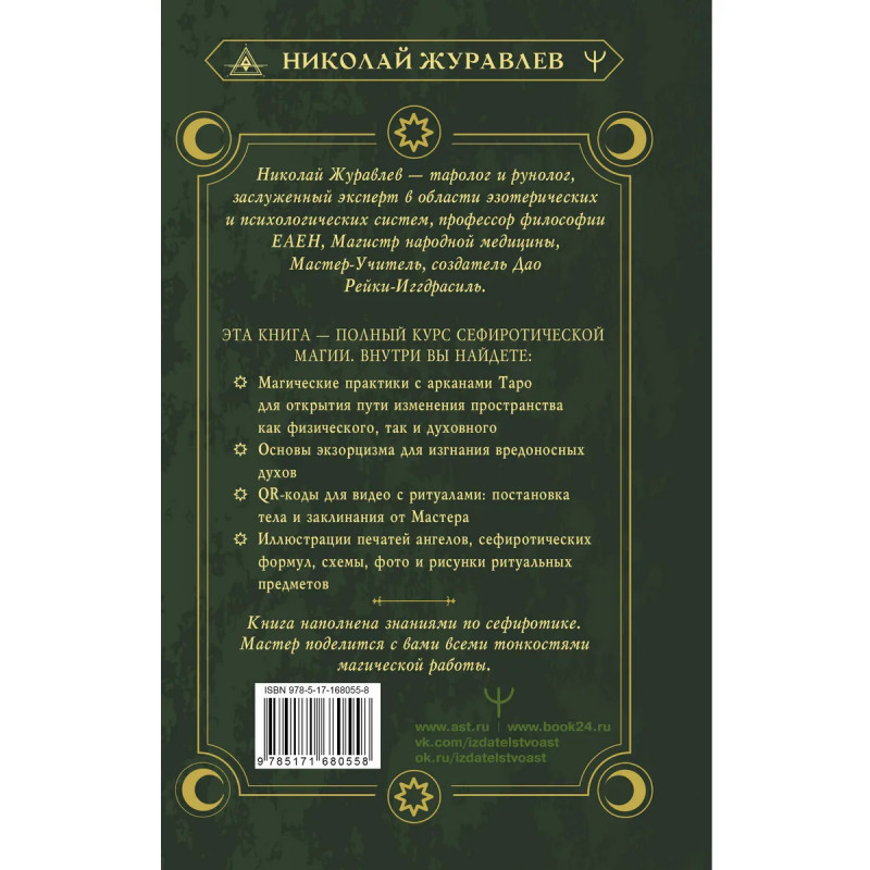 Овладейте древним магическим искусством Сефирота! Мастер Николай Журавлев, опытный маг и Учитель, создатель собственного магического пути и школы последователей, подробно и четко расскажет о магических практиках. Они доказали свою силу и мощь, пройдя сквозь тысячелетия. Ритуалы, заклинания, печати ангелов, сила арканов Таро — все это будет подвластно вам. В книге есть QR-коды для видео, где Мастер в деталях показывает все тонкости проведения ритуалов, рисунки печатей, правильные начертания формул заклинаний, тексты заклинаний для точного воспроизведения (адаптация для русского языка). Разбудите в себе древнюю магическую силу и меняйте свой мир к лучшему!