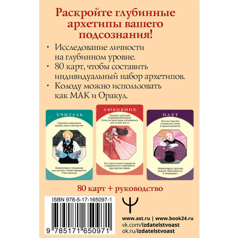 Автор колоды, Кэролайн Мисс, определила 74 наиболее распространенных архетипа, которые встречаются у людей уже многие сотни лет. Каждая карта — это верный защитник и ключик к осознанию вашего внутреннего "я". Вместе с ними вы лучше поймете себя и научитесь справляться с негативными чертами некоторых архетипов.