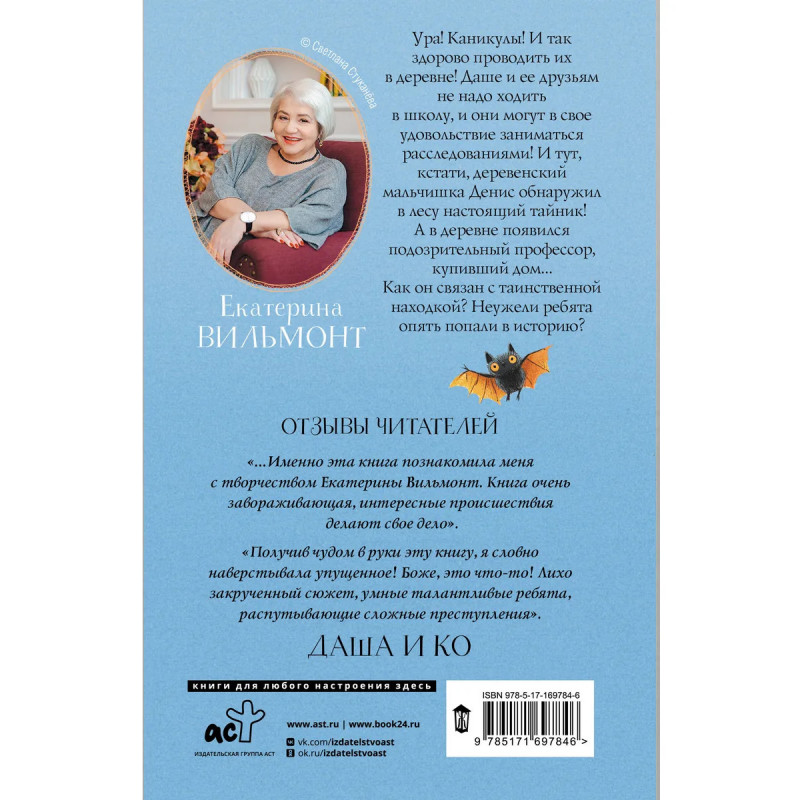 - Переиздание популярного детского детектива. - Идеальная книга для знакомства с жанром. Тут есть все: и нестандартно мыслящие сыщики (кто мыслит оригинальнее, чем дети?), и коварный, но обаятельный «злодей», и восхитительно уместные случаю детали. - От признанного мастера жанра, автора циклов для детей «Даша и Ko», «Сыскное бюро „Квартет“», «Гошка, Никита и Ко». - Екатерина Вильмонт входит в десятку самых издаваемых авторов России. Общий тираж ее книг преодолел отметку в 5 миллионов экземпляров. - Для детей и подростков 7–16 лет.