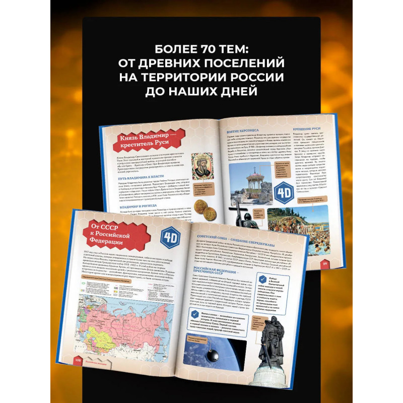 Люди живут на территории России десятки тысяч лет — начиная с каменного века, а Российское государство существует уже более 11 веков. В этом издании описана история России от древности и до наших дней, последовательно представлены венценосные особы, возглавлявшие ее в разное время, — князья, цари, императоры. У каждого из правителей была своя судьба, свои горести и радости, мечты и устремления, но главным их предназначением, конечно же, являлось соблюдение интересов государства и достижение его благоденствия. Государи правили, а их народ творил историю: люди сеяли хлеб, строили города и дороги, путешествовали и осваивали новые земли, сражались и побеждали, сделав нашу страну крупнейшей в мире, создавали произведения искусства и совершали научные открытия. На страницах книги многие из этих событий показаны через призму технологий дополненной реальности.