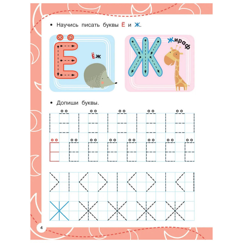 • Направляющие стрелочки-помощницы не дадут запутаться в написании букв!