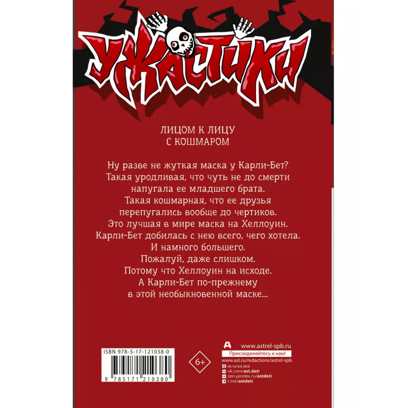 ЛИЦОМ К ЛИЦУ С КОШМАРОМ Ну разве не жуткая маска у Карли-Бет? Такая уродливая, что чуть не до смерти напугала ее младшего брата. Такая кошмарная, что ее друзья перепугались вообще до чертиков. Это лучшая в мире маска на Хеллоуин. Карли-Бет добилась с нею всего, чего хотела. И намного большего. Пожалуй, даже слишком. Потому что Хеллоуин на исходе. А Карли-Бет по-прежнему в этой необыкновенной маске...