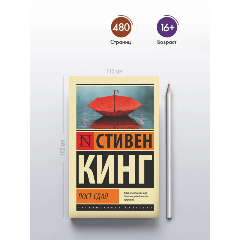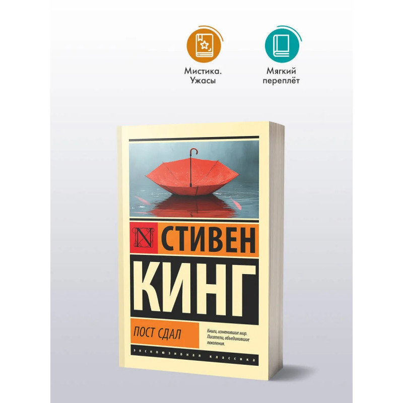 — От автора бестселлеров «Сияние», «Оно» и «Зеленая миля». — «Пост сдал» — третья и заключительная часть трилогии «Мистер Мерседес», повествующей о полицейском в отставке Билле Ходжесе. — Все три книги трилогии легли в основу трех сезонов популярного сериала «Мистер Мерседес». — Стивен Кинг — один из самых популярных писателей современности. Он написал свыше шести десятков бестселлеров, которые переведены на 44 языка, изданы в 80 странах мира и разошлись тиражом более 400 000 000 экземпляров. — Издание в серии «Эксклюзивная классика» — в удобном карманном формате и в узнаваемом оформлении.