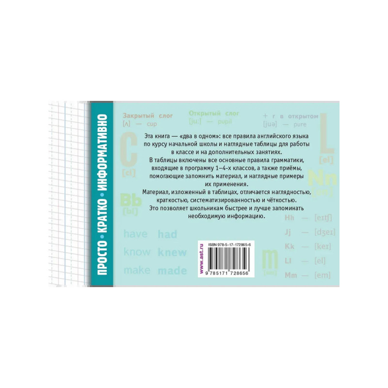 Справочное пособие «Все таблицы по английскому языку для начальной школы» основано на эффективной методике О. В. Узоровой — известного педагога-практика и самого востребованного автора учебных пособий. В книге ребёнок найдёт весь материал по английскому языку за 2–4 классы, для удобства и наглядности представленный в форме схем и таблиц. Справочник можно использовать как для изучения правил «с нуля», так и для повторения уже изученных тем. Благодаря регулярным занятиям по книге ученик сможет без лишних усилий подготовиться к контрольным и проверочным работам.