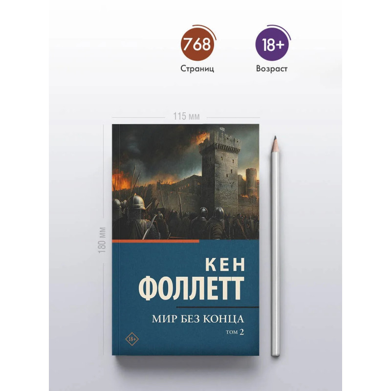 — Кен Фоллетт — один из самых успешных авторов современности. Его романы переведены на 40 языков, издаются в 80 странах и разошлись по свету тиражом в 195 000 000 экземпляров. — Самая известная книга Фоллетта — масштабный исторический роман «Столпы земли», положивший начало циклу «Кингсбридж». На сегодняшний день в цикле вышло пять книг. Каждая из них обладает самостоятельным законченным сюжетом и может читаться по отдельности. — Вторая часть романа «Мир без конца». — «Мир без конца» — вторая книга цикла «Кингсбридж». — В 2012 году роман «Мир без конца» лег в основу одноименного сериала с Беном Чаплином и Индирой Вармой в главных ролях. — Издание в серии «Классическая и современная проза» — в удобном карманном формате и стильном оформлении.