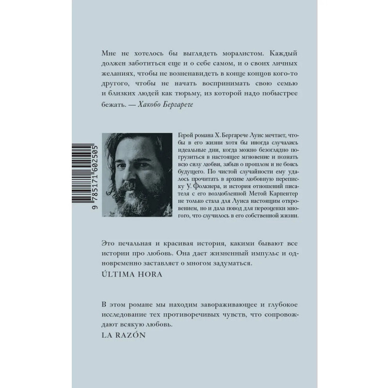 скуке и бытовой рутине разрушить их? Бергарече считает эти вопросы вечными и поэтому не пытается дать на них однозначные ответы. Тем не менее какими-то рецептами, почерпнутыми из собственного жизненного опыта, герой с читателями делится.