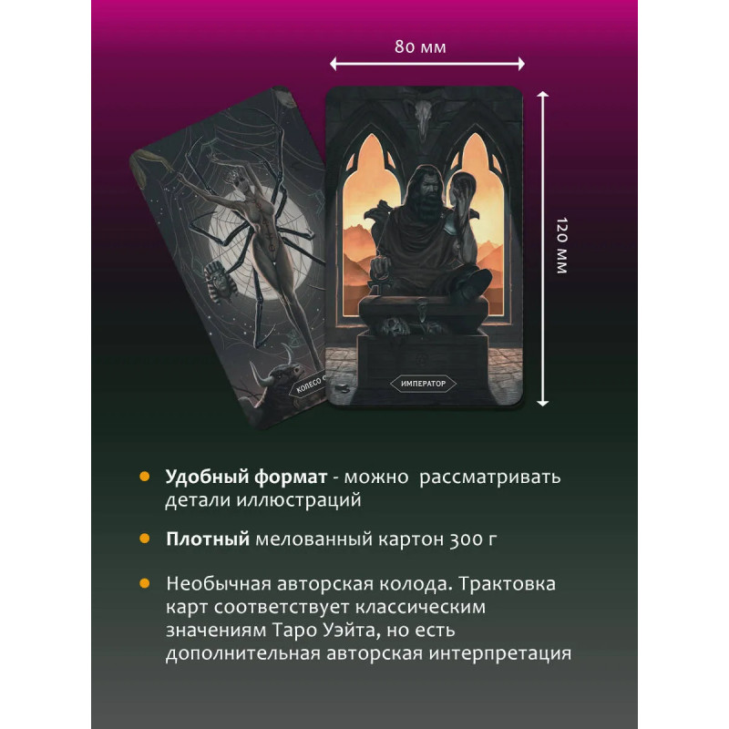 Если тебе интересен нестандартный подход к Таро, и ты хочешь, чтобы расклады не просто давали ответы, а раскрывали целые истории, эта колода точно станет твоим проводником в безумный и захватывающий мир Теней.