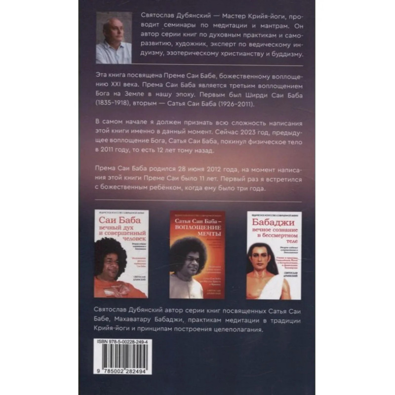 Эта книга посвящена Преме Саи Бабе, божественному воплощению XXI века. Према Саи Баба является третьим воплощением Бога на Земле в нашу эпоху. Первым был Ширди Саи Баба (1835–1918), вторым — Сатья Саи Баба (1926–2011). В самом начале я должен признать всю сложность написания этой книги именно в данный момент. Сейчас 2023 год, предыдущее воплощение Бога, Сатья Саи Баба, покинул физическое тело в 2011 году, то есть 12 лет тому назад. Према Саи Баба родился 28 июня 2012 года, на момент написания этой книги Преме Саи 11 лет. Первый раз я встретился с божественным ребёнком, когда ему было три года, Я посещаю его дом на протяжении восьми лет, наблюдая за каждым днём его детства, ростом и становлением.